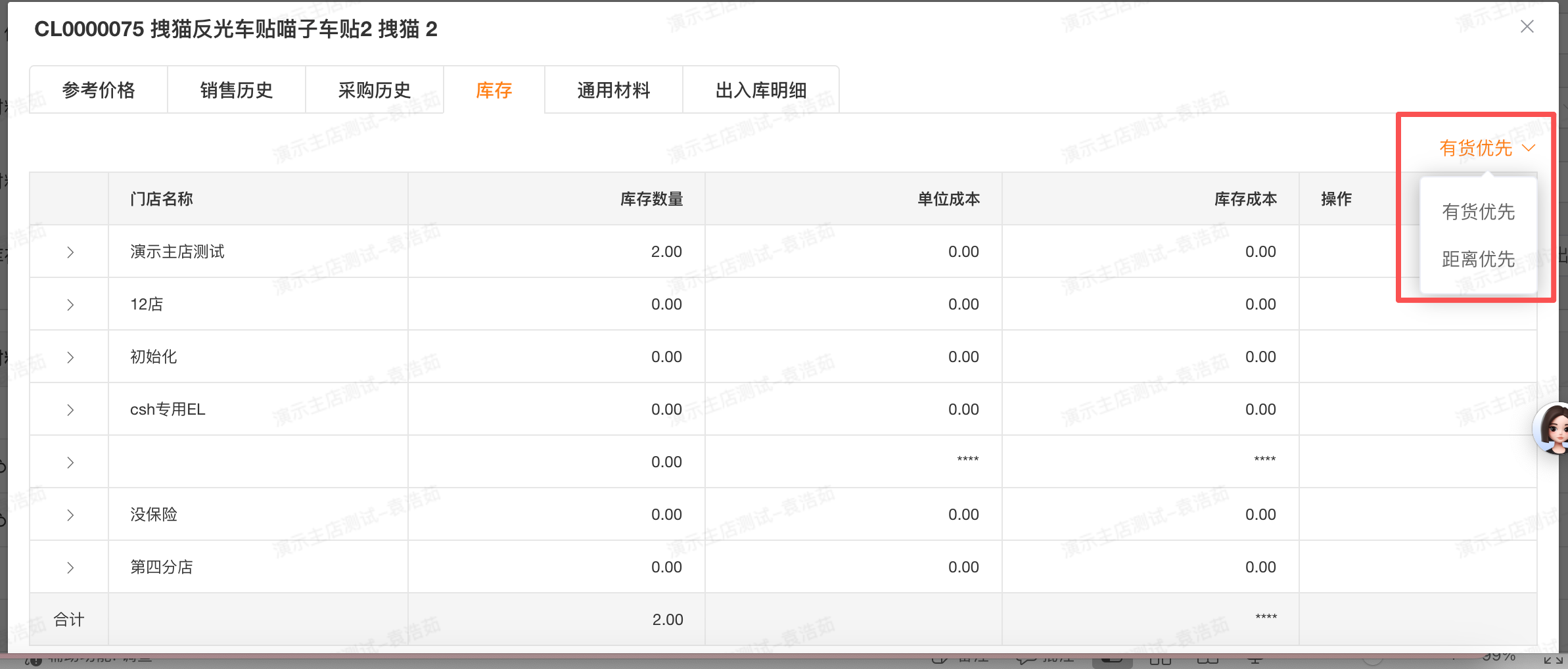 【库存】材料-连锁门店库存查看,增加“距离优先”排序方式