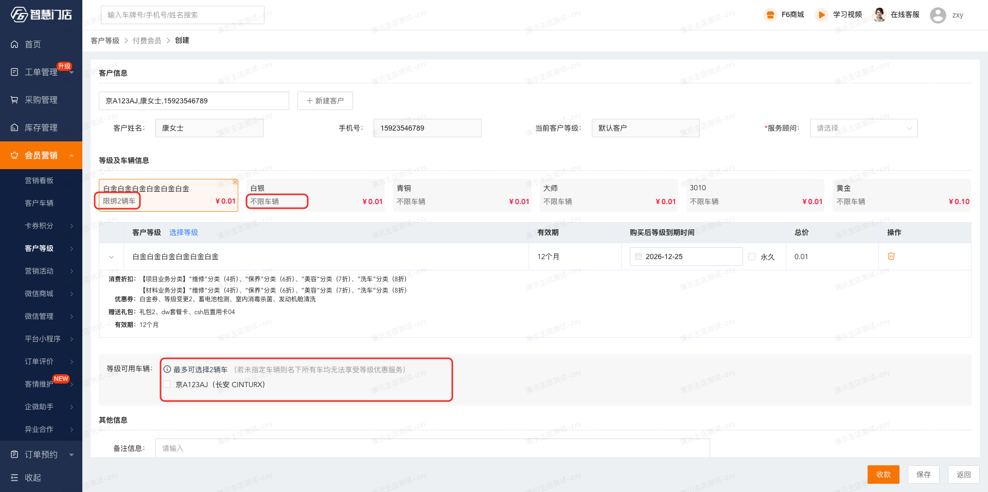 - 客户购买付费会员等级时,需选择目标等级并绑定等级优惠可用车辆;购买成功后,仅绑定车辆可享受该等级对应的优惠权益。