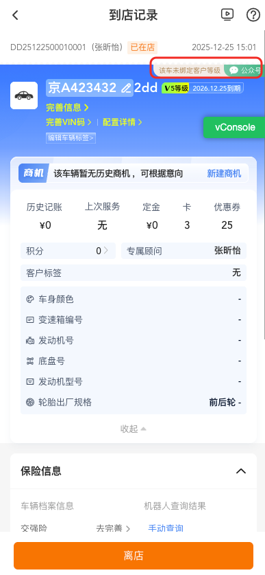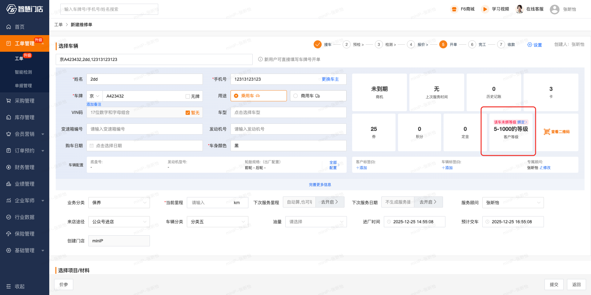若车辆未绑定等级优惠,系统将提示 “当前车辆未绑定等级”,且该工单无法享受等级优惠。