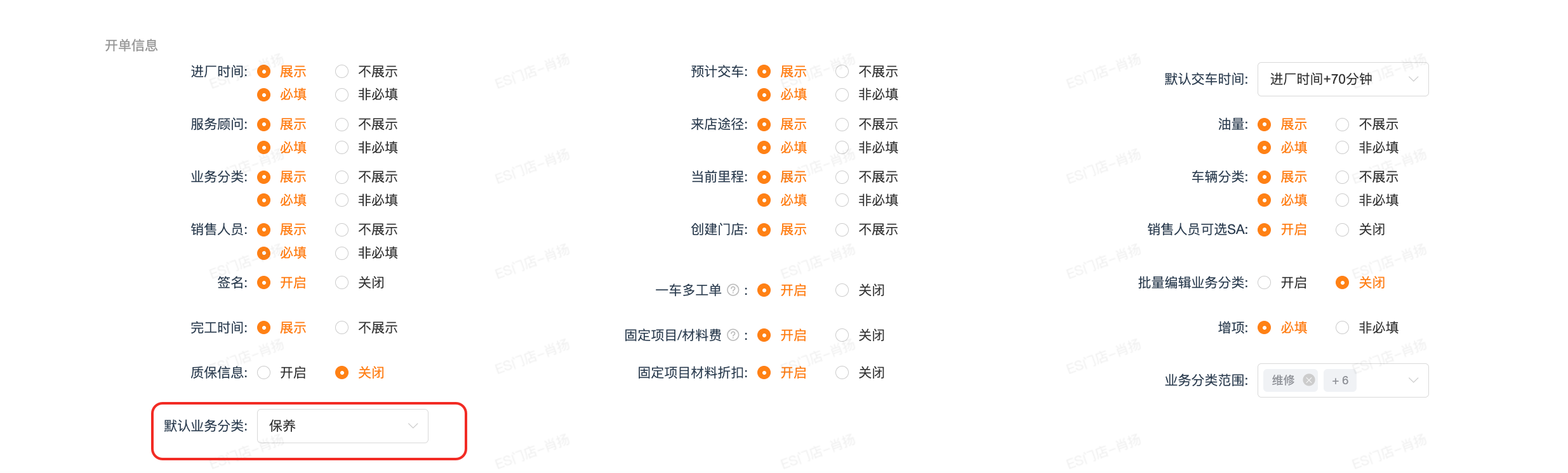 【维修单、贴膜单、洗车单、理赔单】支持设置默认业务分类