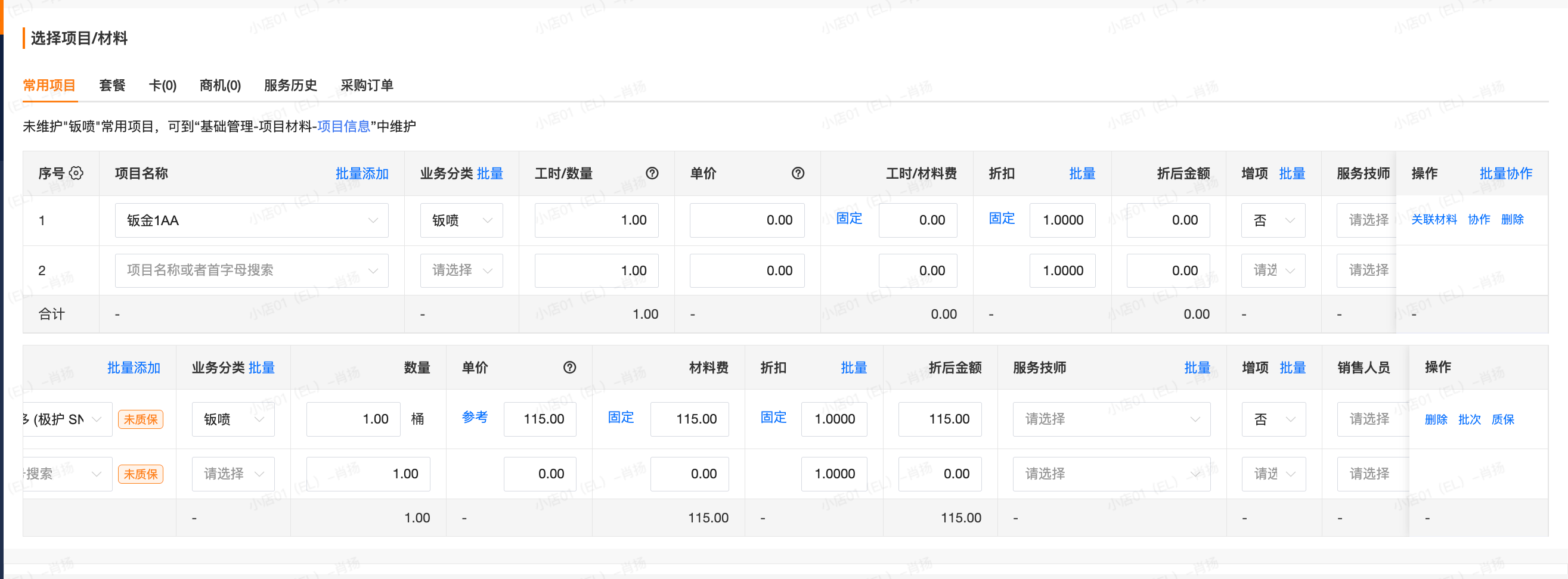 【批量增项】维修单、贴膜单、洗车单、理赔单支持批量增项