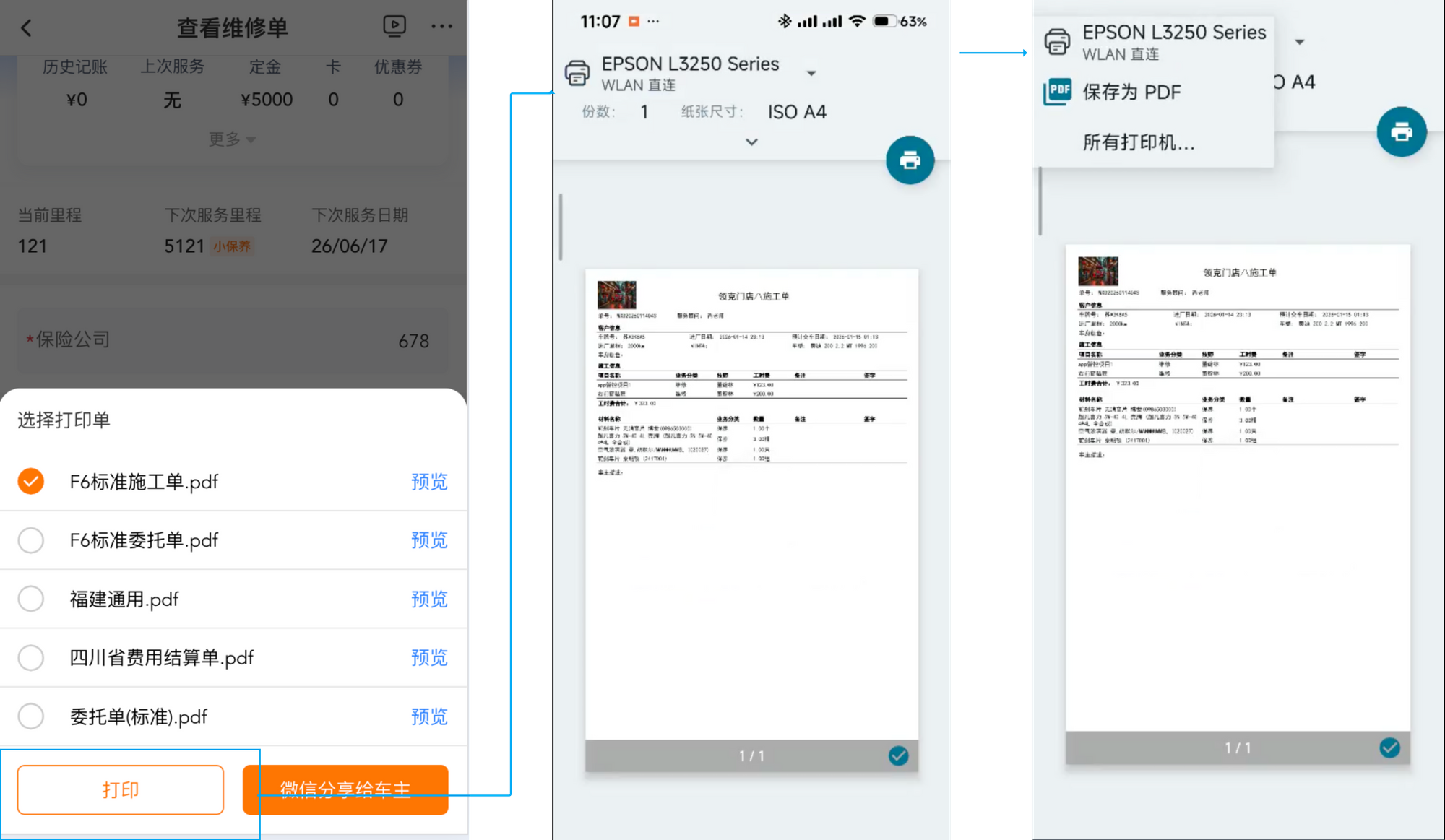 【无线打印】维保单、维修单、贴膜单、洗车单支持无线打印